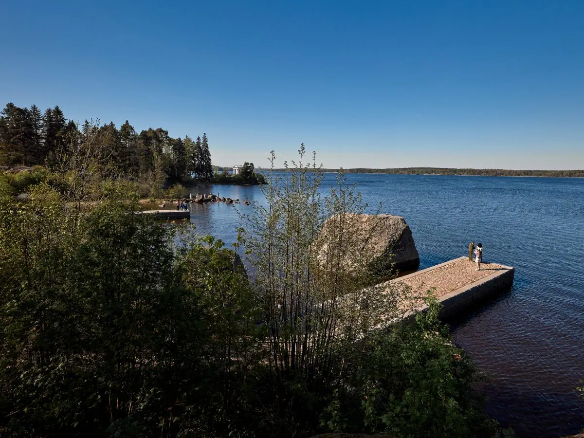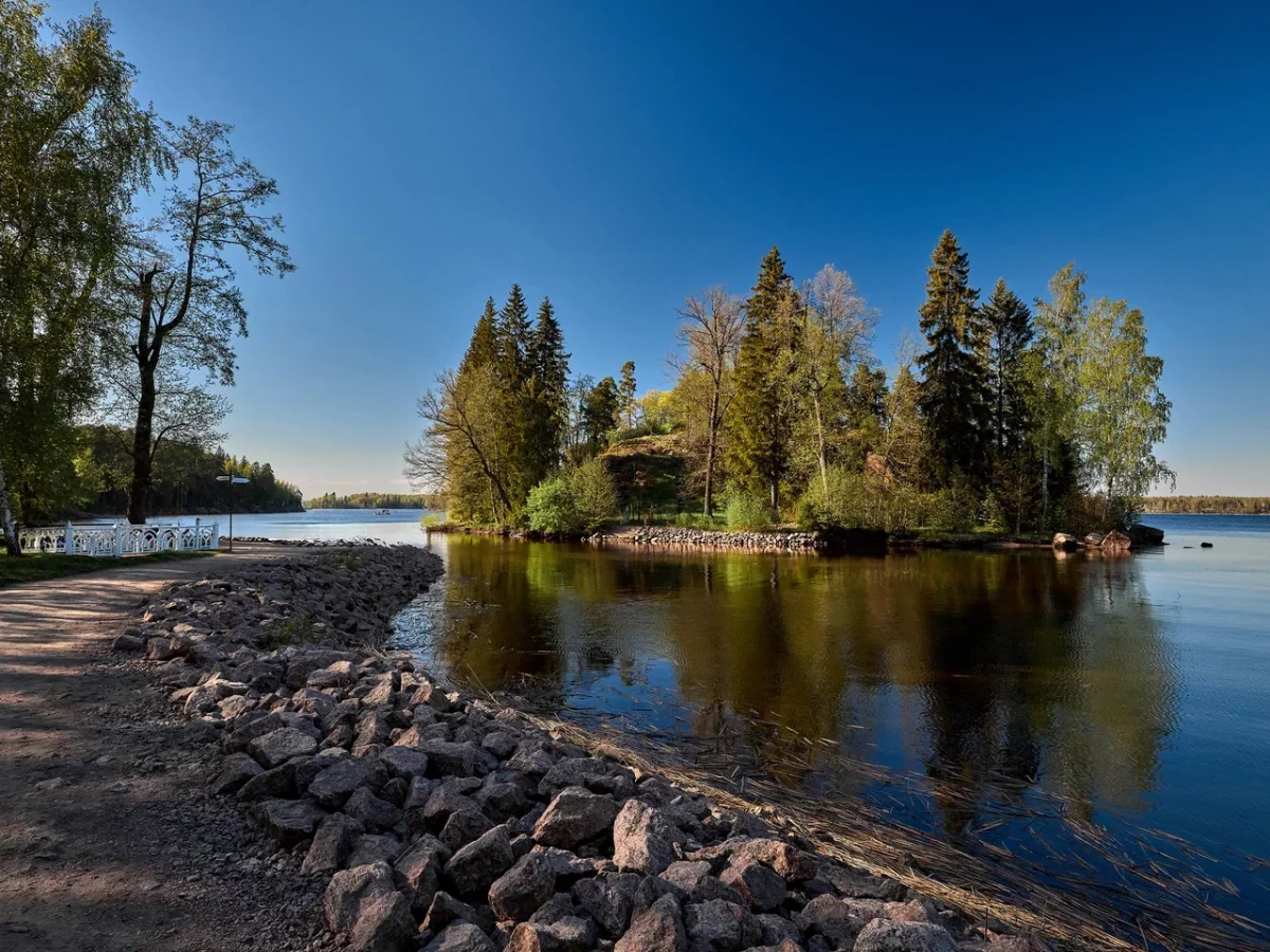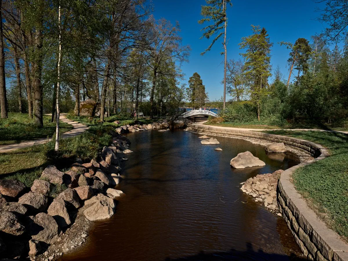 Территория вокруг усадьбы больше похожа на парк, в то время как северная часть Монрепо плавно переходит в первозданную тайгу.