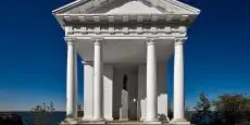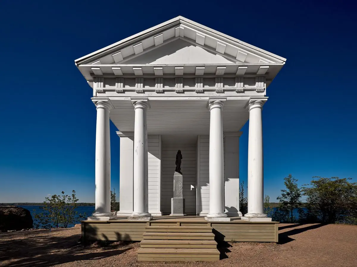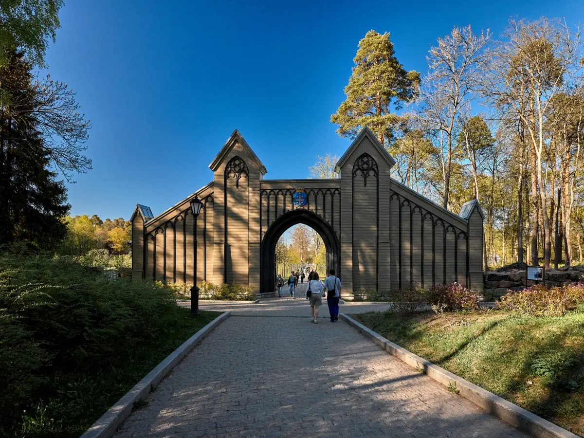 Парк представляет собой уникальный образец паркового искусства той эпохи. Знакомство с архитектурой парка начнется на первых шагах, с проходом ворот Монрепо. Далее вы уже сможете оценить разнообразие достопримечательностей, раскинутых по всей территории парка, – это и усадебный дом, и «Хижина отшельника», храм Нептуна и остров Людвигштайн.