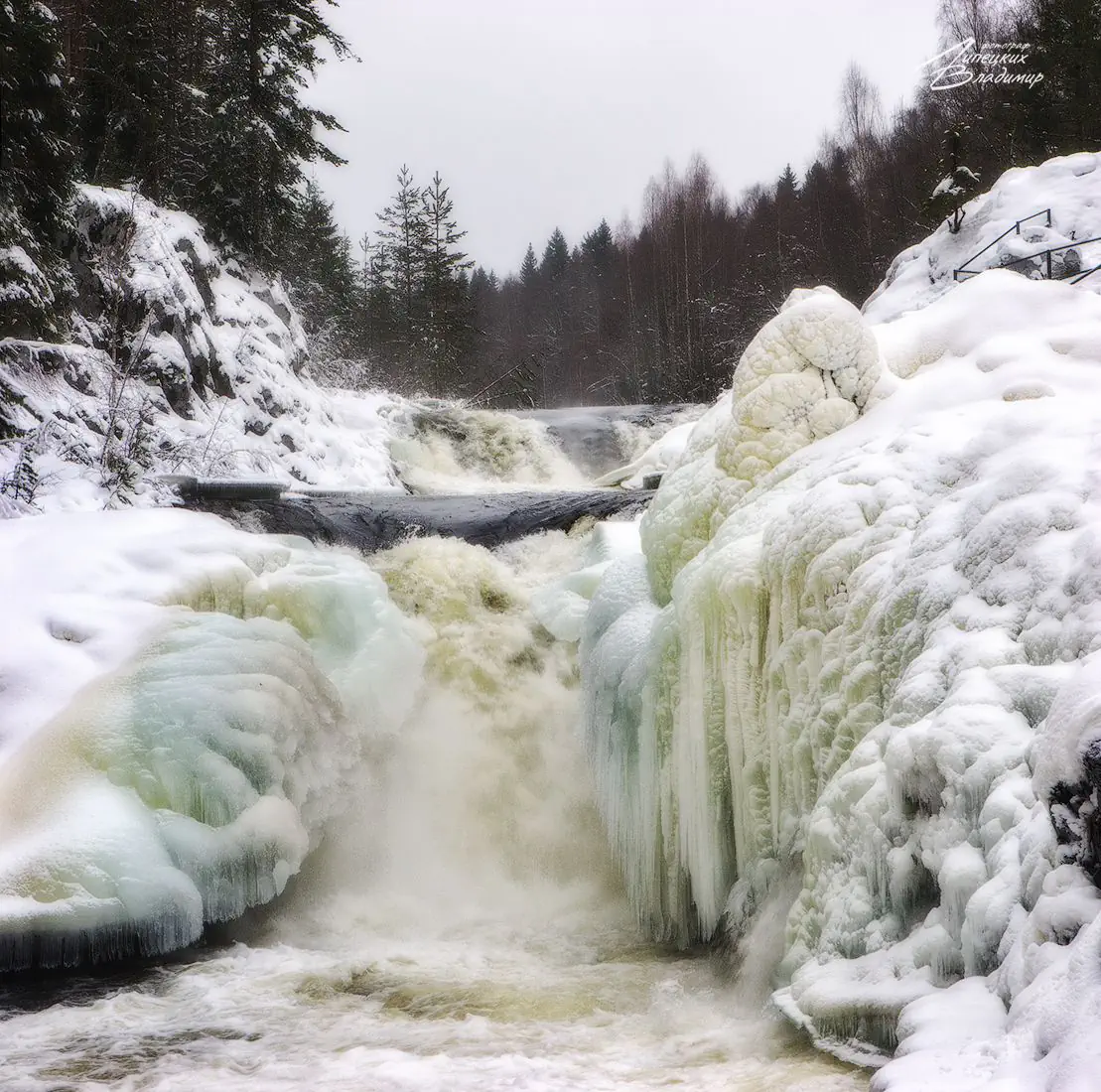 «Братья-падуны», как их называют местные жители, были бы единым целым, если бы не остров посреди реки, который делит течение надвое. В результате образовались два водопада – 18-метровый и 11-метровый. Они такие мощные, что даже суровой зимой не замерзают полностью, а дышат и сопротивляются морозу под ледяным панцирем, пробиваясь наружу.