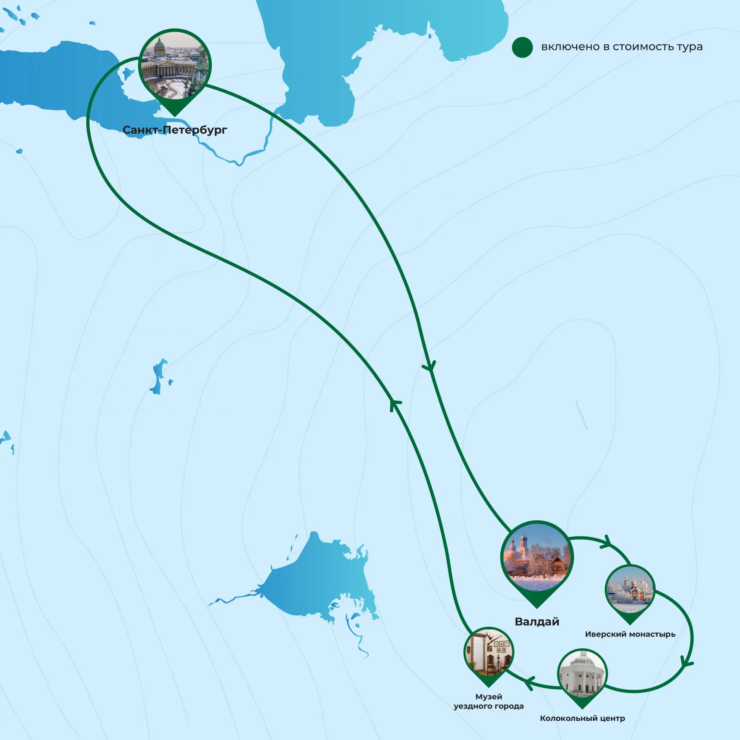 В стоимость включено экскурсионное обслуживание и трансфер.