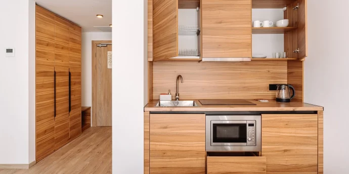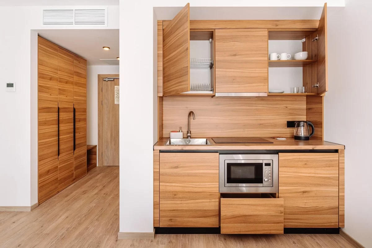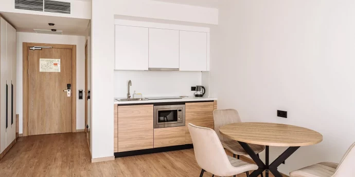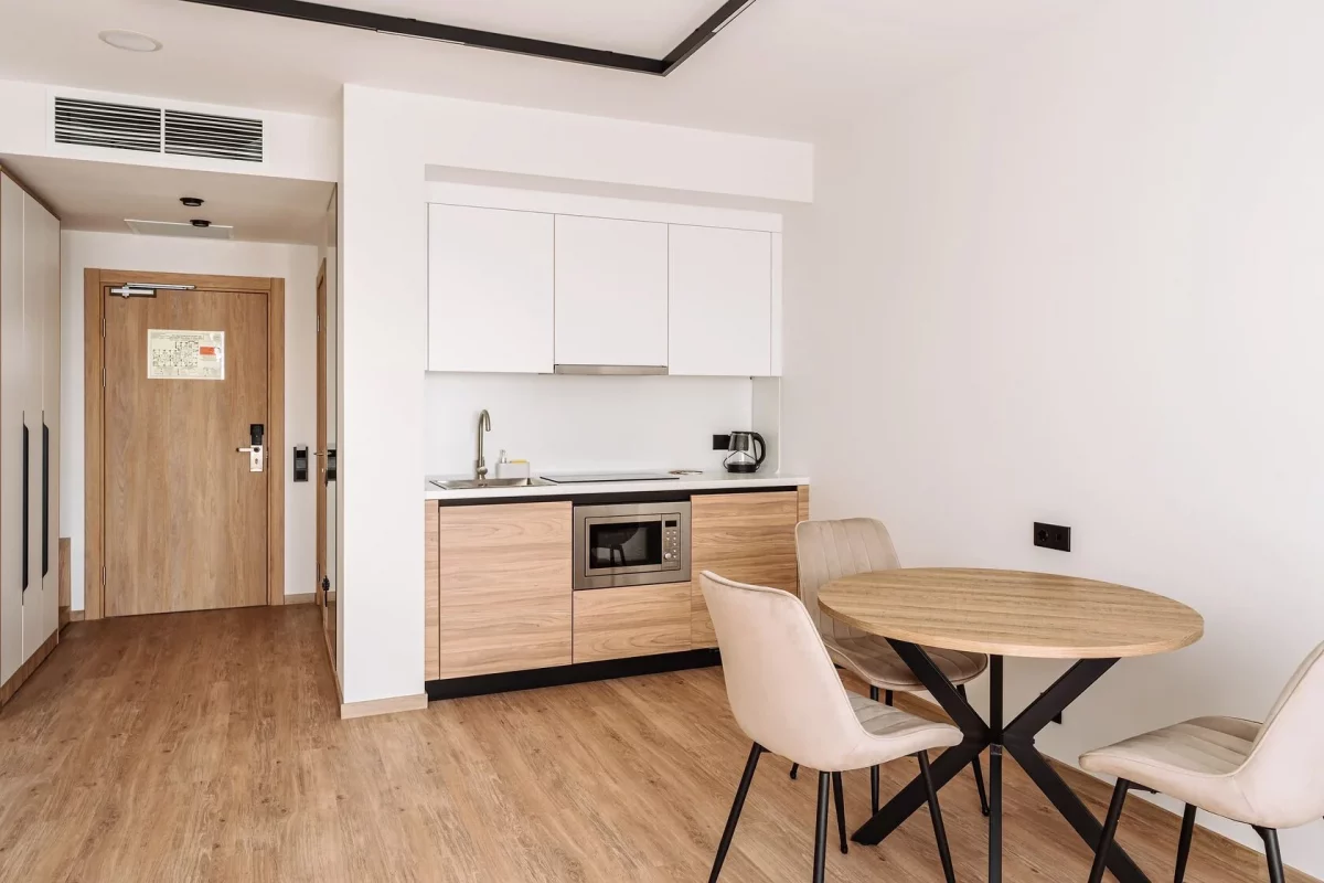 Полностью оборудованная кухня делает проживание особенно комфортным.