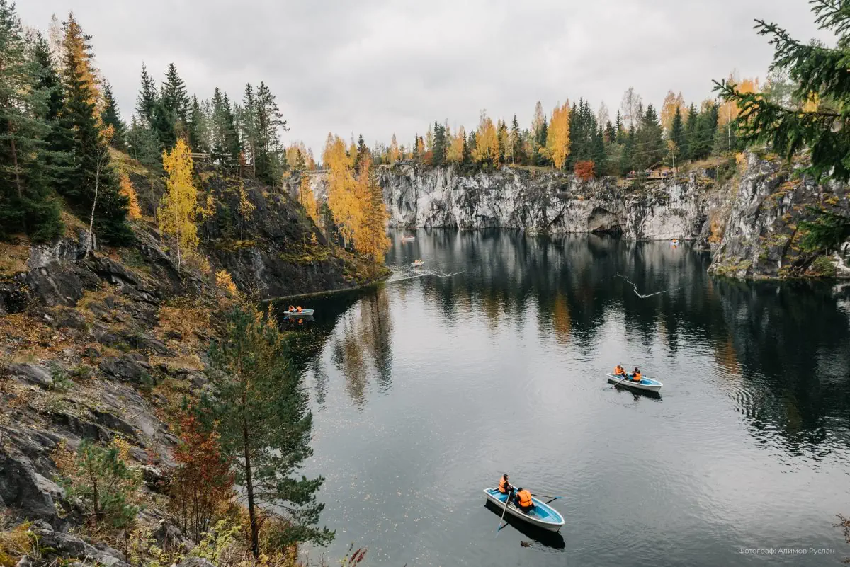 Чем заняться в Карелии золотой осенью? Лучшее время для фототуров и путешествий по знаменитым карельским маршрутам. Сбор грибов и ягод продолжается, а природа буквально сияет. Можно устроить пикник на природе, наслаждаясь яркими красками. Вода в озерах уже холодная, но в ясный теплый день можно совершить прогулку на лодке — например, по Мраморному каньону в горном парке «Рускеала.