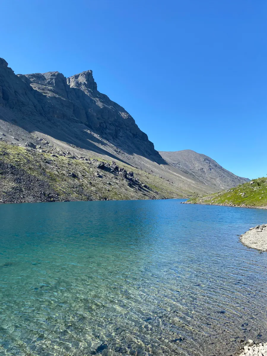 Мы минуем озеро Длинное – небольшой вытянутый водоем, в водах которого отражается небо и соседние вершины. Далее нас ждет еще одно озеро, Сердцевидное, названное так, конечно же, из-за своей формы. Здесь каменистые склоны гор украшают травы, лишайники и мхи, растения, прорывающиеся к солнцу вопреки суровому северному климату.