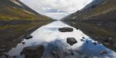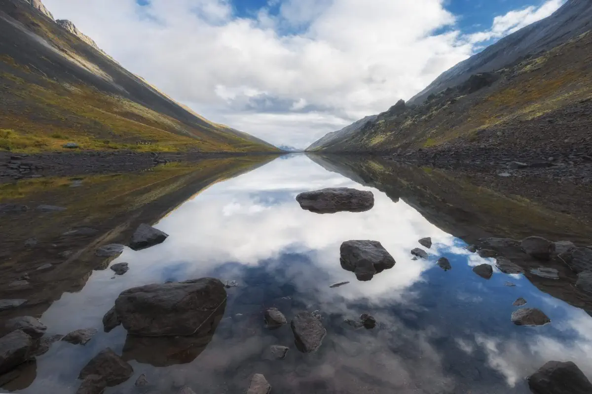 Сначала мы устремимся к перевалу Кукисвум, название которого с саамского переводится как «длинная долина». И действительно, перевал похож на вытянутую долину, которую обступают невысокие каменистые вершины, окутанные облаками. Здесь уже появляется ощущение присутствия на другой планете. И если чуть-чуть подключить фантазию, очень просто представить себя межпланетным первопроходцем.