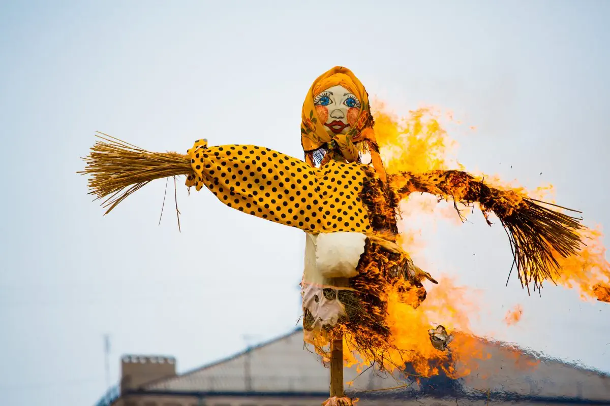 Яркие ритуалы: кульминацией станет традиционное сжигание чучела Масленицы, в костёр вместе с которым полетят блины и «мартинички» на счастье.