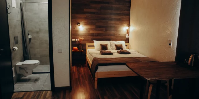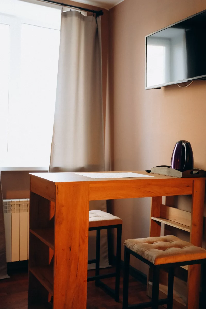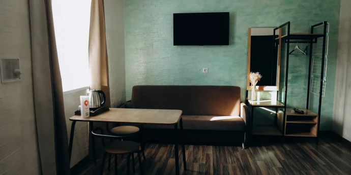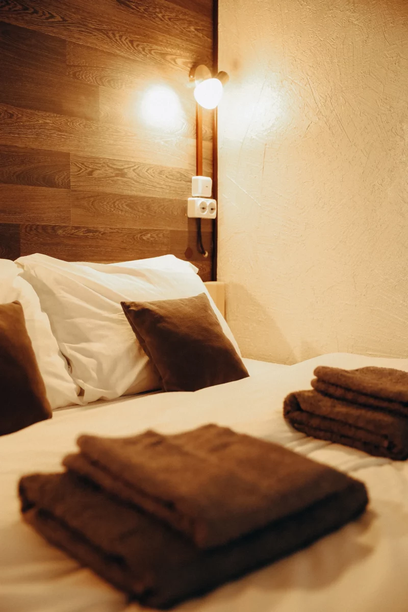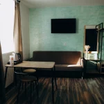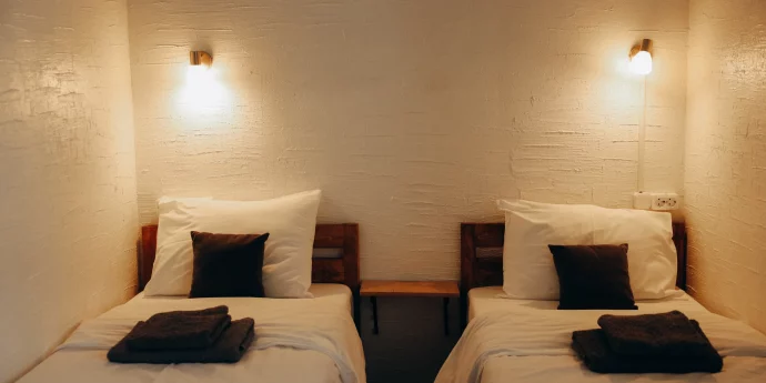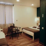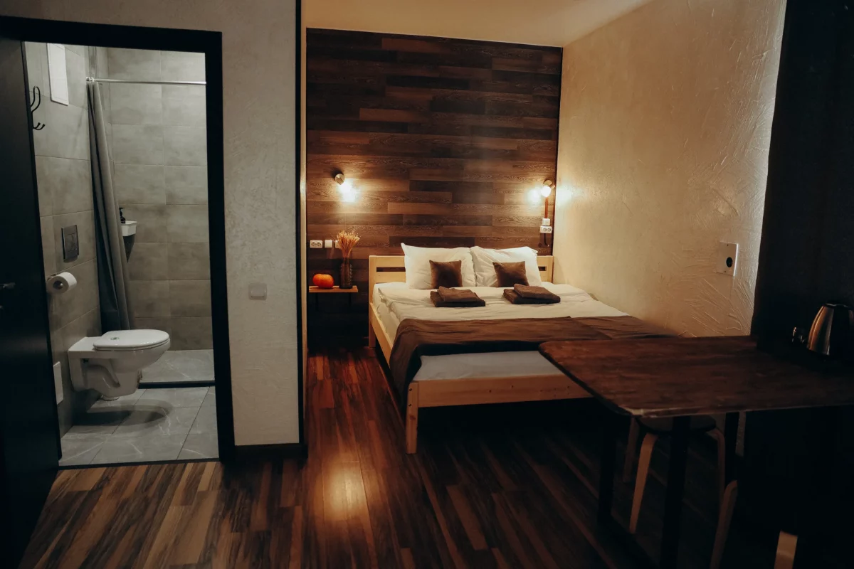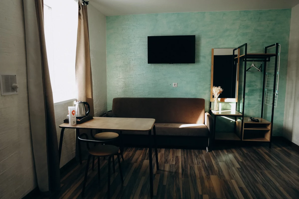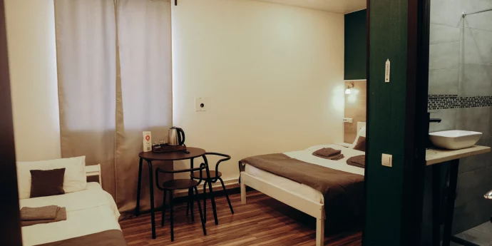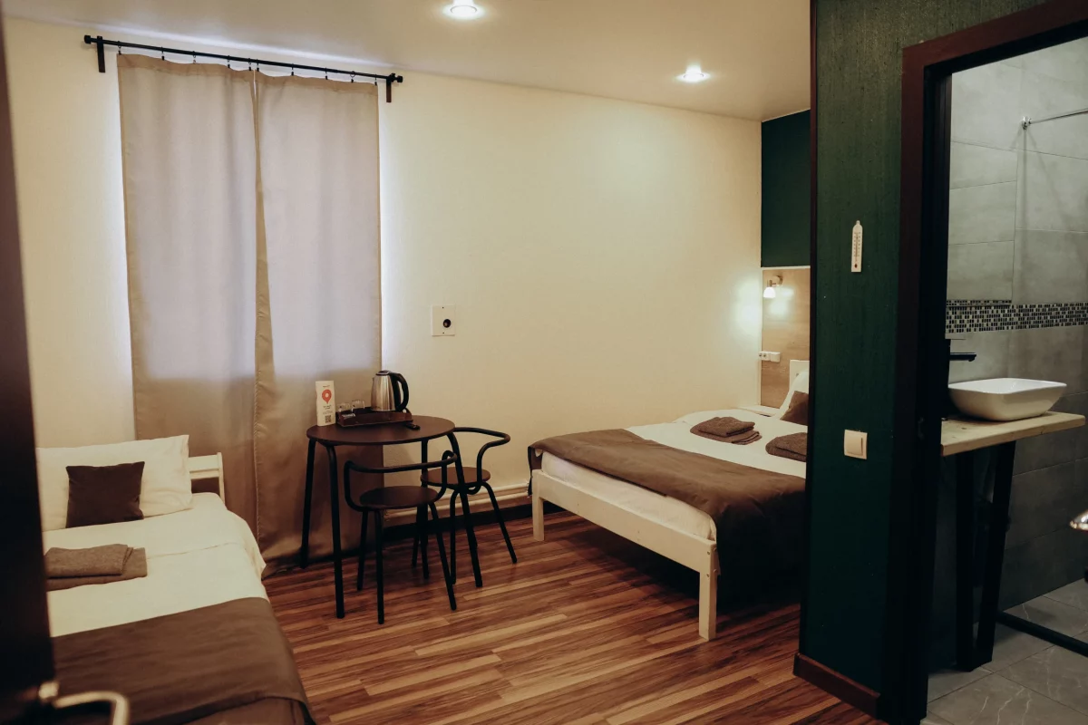 Отель идеально подойдёт для путешественников, которые ценят спокойствие и удобство. Здесь вы найдёте всё необходимое для комфортного проживания: светлые номера, удобные кровати, санузлы и просторная кухня для самостоятельного приготовления.