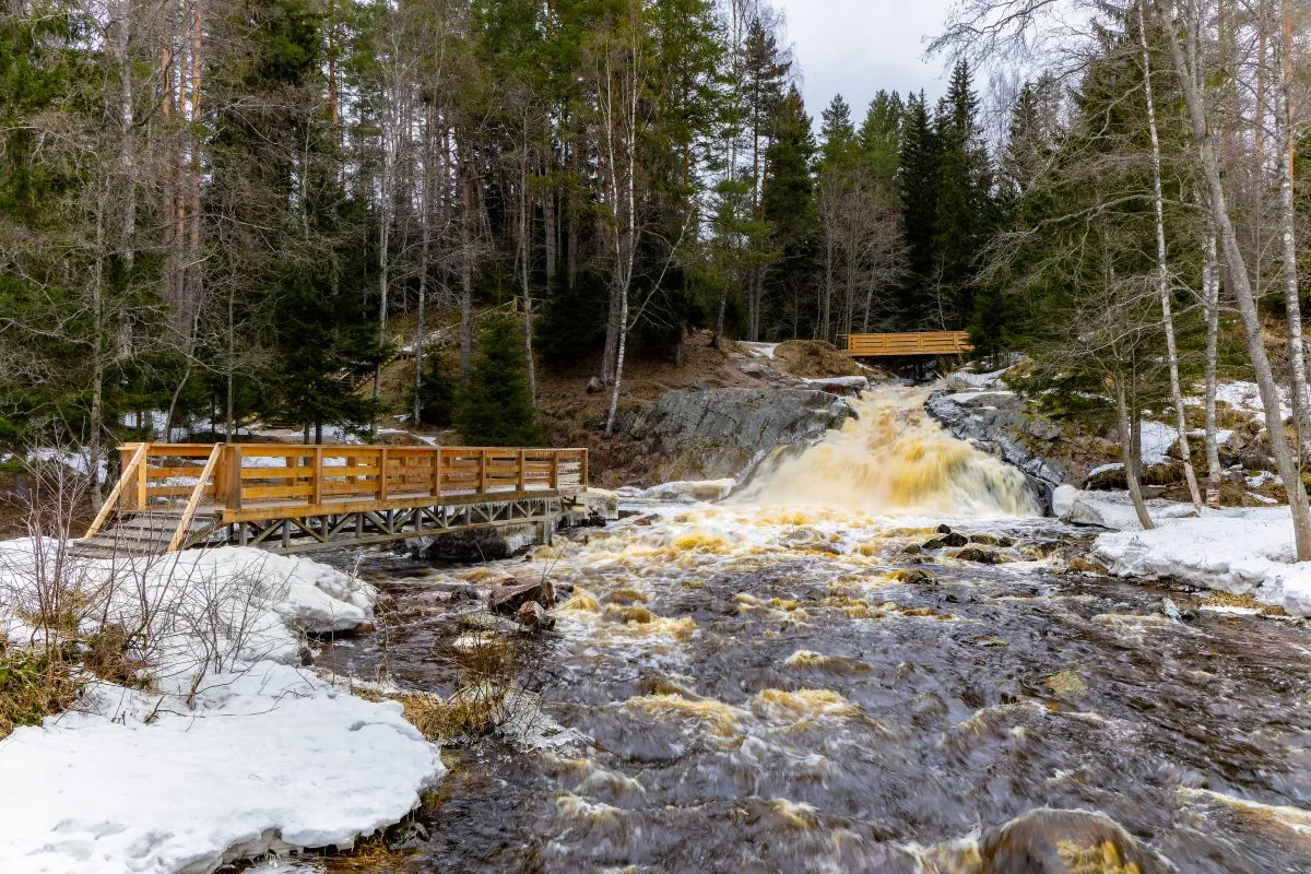 Янисйоки привлекает многих туристов порогами с большим перепадом высот! Целый каскад порогов, плотин, перекатов и островков по ходу течения наполняют лес оглушительным шумом несущейся среди камней бурной реки. Благодаря необычному рельефу летом этот участок реки является идеальным местом для любителей сплавов! Несколько мостов, расположенных вдоль реки, позволят полюбоваться видом сверху и сделать красочные фотографии!