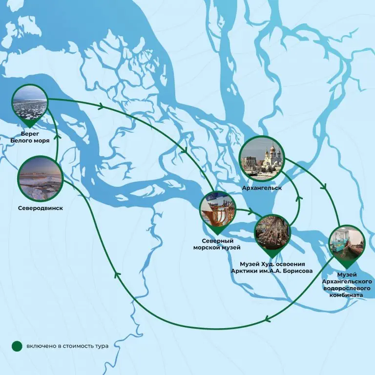 1-й день: Архангельск – обзорная автобусная экскурсия «России первый порт» – обед –музей под открытым небом – Музей Архангельского водорослевого комбината