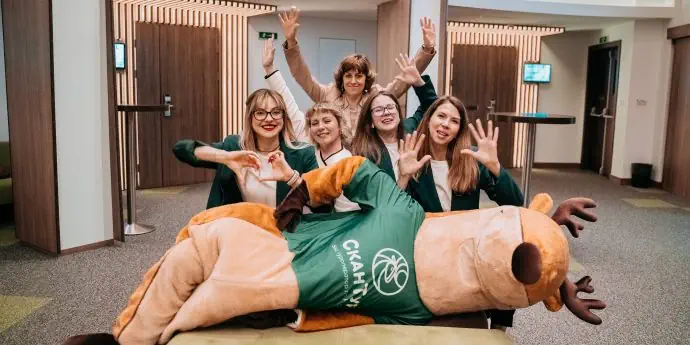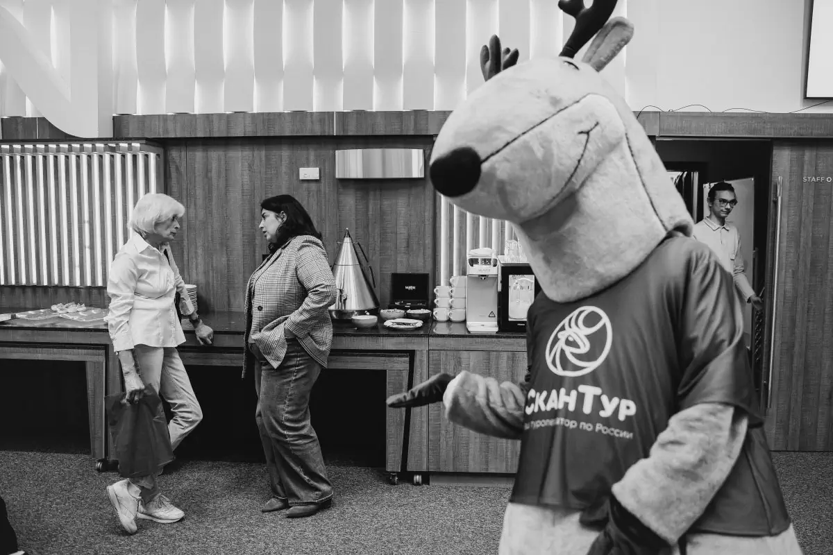 Кофе-брейк, организованный в перерыве, предоставил возможность для неформального общения, что позволило участникам обменяться опытом и идеями в дружелюбной атмосфере, созданной маскотом мероприятия — оленем.