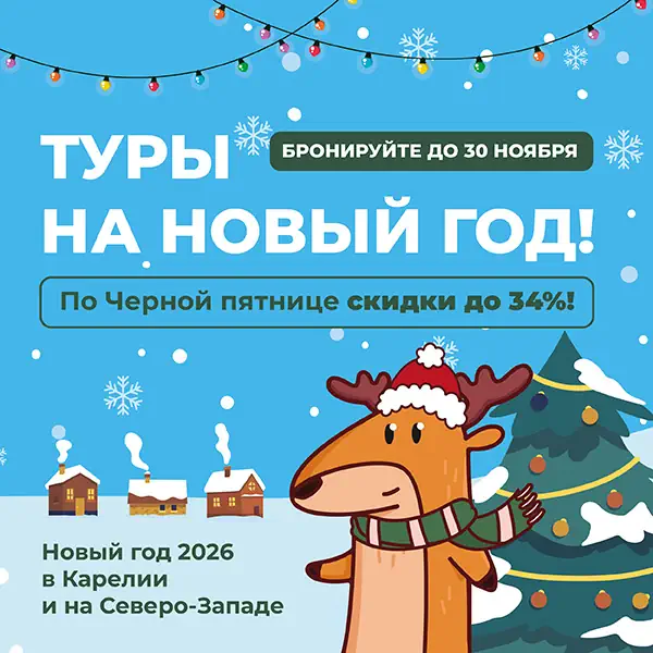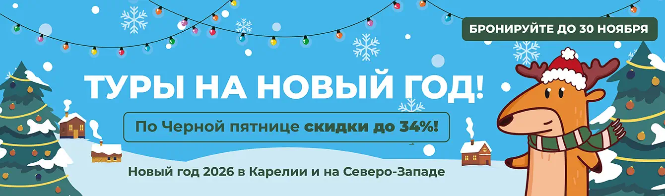 Зимняя Карелия и Северо-Запад — волшебство заснеженных лесов и северного сияния, которое пробуждает детские мечты. Ваш Новый год наполнится активными приключениями, зимними забавами и уютными вечерами под звездным небом.