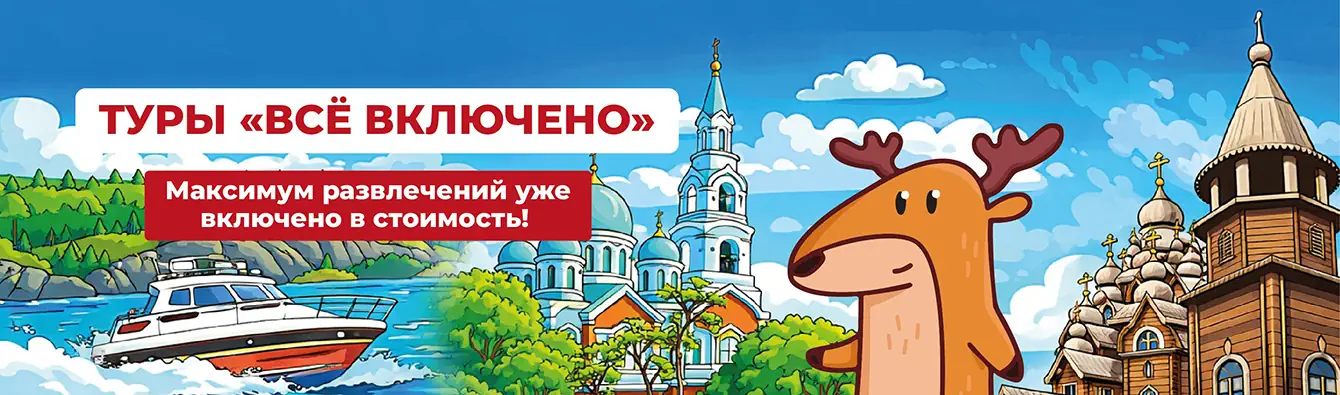Все самые интересные экскурсии по Карелии включены в стоимость тура! Вы увидите шедевры деревянного зодчества на острове Кижи и попадете на знаменитый остров Валаам.